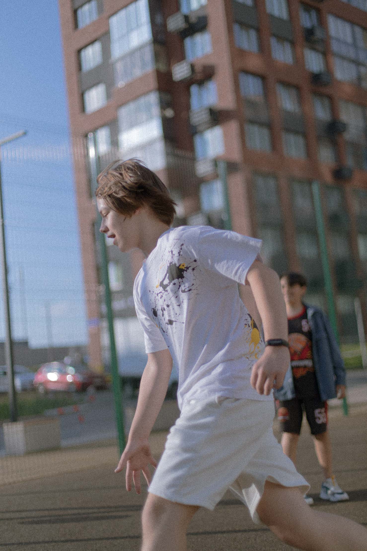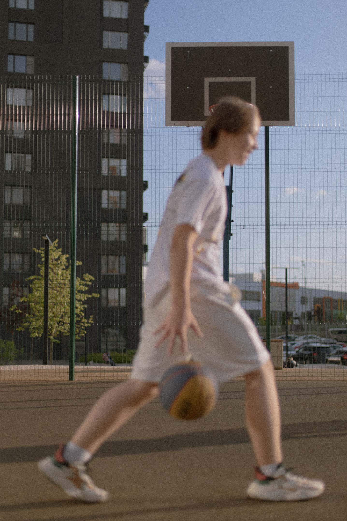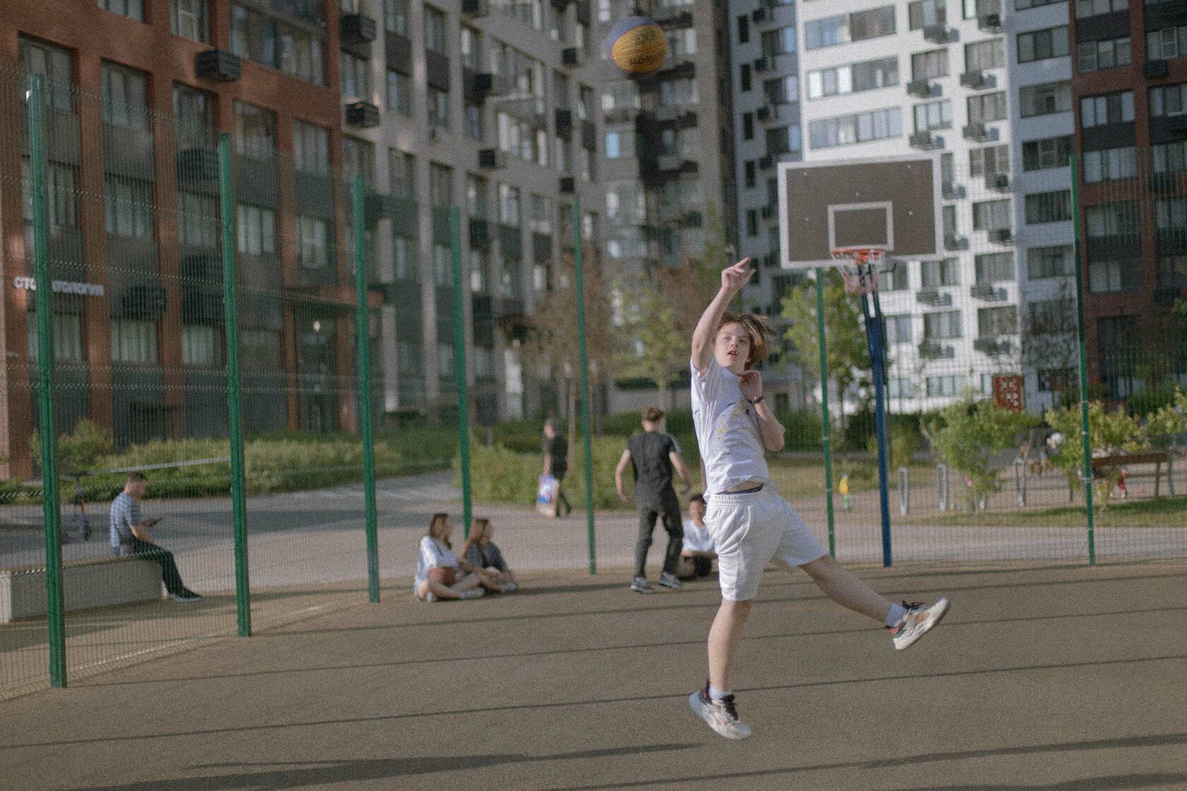 Никита рассказывает, а на фоне звуки удара по мячу — как и Макс с друзьями, Никита играет в баскетбол во дворе, и мы встречаемся на площадке. Отвлекается на разговор со мной, но видно, что уже хочется вернуться назад в игру.